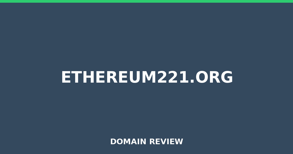 Comprehensive ethereum221.org review 2026. Analysis of domain age, security, and credibility factors. Read our detailed analysis and protect your interests.