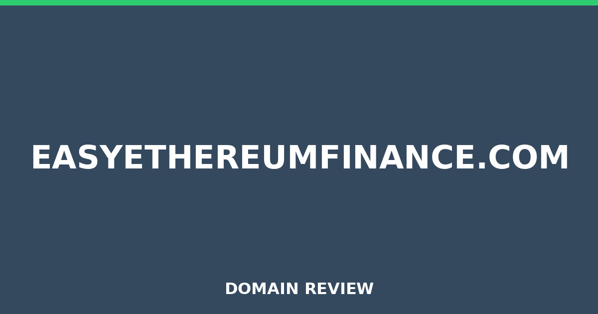 Comprehensive easyethereumfinance.com review 2026. Analysis of domain age, security, and credibility factors. Read our detailed analysis and protect your interests.